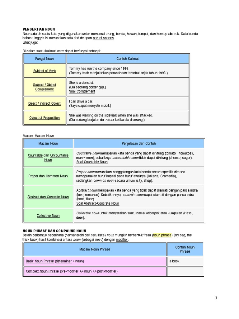 My mother's secret for her anti aging is consuming fruit every day sama halnya dengan common noun, proper noun juga berasal dari bagian concrete noun yaitu kata benda yang bisa dilihat, dirasakan, dan dipegang oleh pancaindra kita. Noun adalah kata yang dipergunakan untuk memberi nama. Some proper nouns get so much use that they lose their identification with the brand name or inventor and become common nouns. Contoh common noun dalam kalimat. Proper noun di awali dengan huruf kapital di setiap kalimat sedangkan common noun tidak menggunakan huruf kapital. 2.proper noun dan common noun. Prepositions are usually used in front of nouns or pronouns and they show the relationship between. Walaupun mungkin menggunakan kata yang sama, tentu saja cara penggunaannya berbeda. Dalam membuat kalimat bahasa inggris kita bisa saja menggunakan kata benda. Pengertian proper nouns and common nouns: Common noun tidak menggunakan huruf kapital di awal katanya, kecuali jika digunakan untuk mengawali kalimat atau menjadi judul. A proper noun is a noun that identifies a single entity and is used to refer to that entity, such as london, jupiter, sarah, or microsoft, as distinguished from a common noun, which is a noun that refers to a class of entities (city, planet, person, corporation). Noun (atau kata benda) adalah satu dari salah satu parts of speech dalam bahasa inggris.
